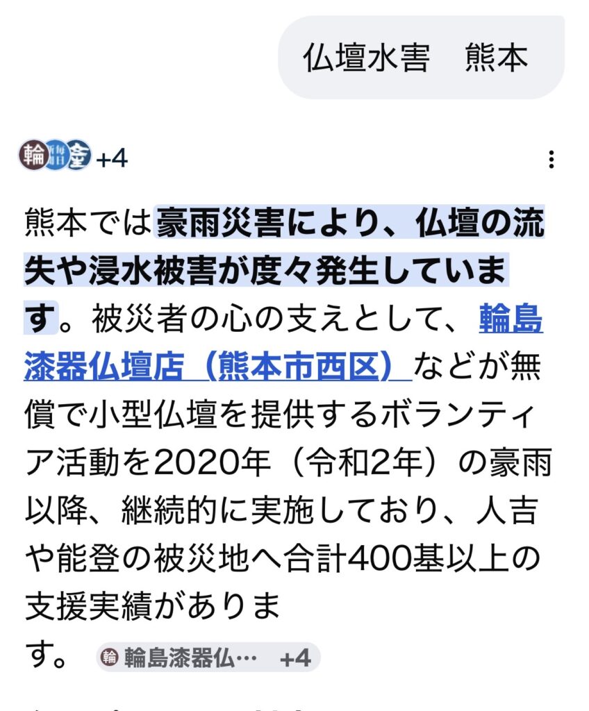 『熊本水害被害仏壇 修理』と検索したら,永田社長の人吉豪雨支援仏壇400基無償提供が,たくさんアップされてました*\(^o^)/*