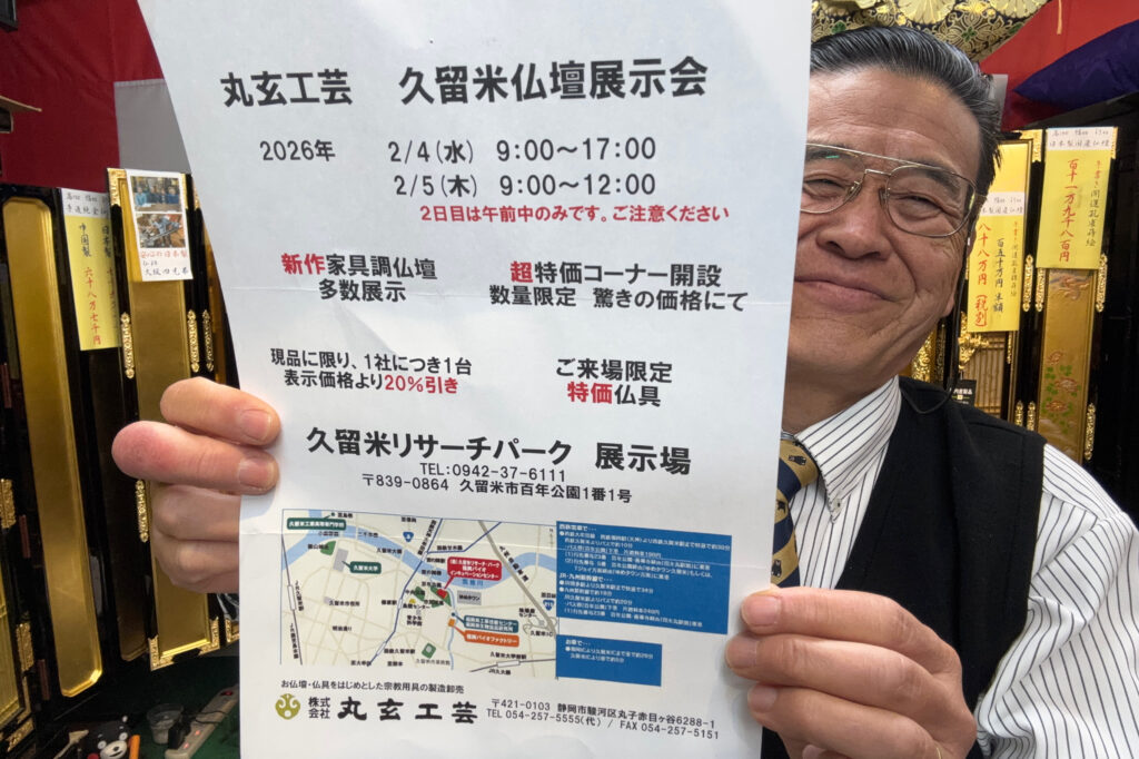 https://youtu.be/ZP87U2oXq88TBS系列九州全局ネット『窓を開けて九州ー被災地に届ける希望の仏壇』当店紹介いただきました🎶