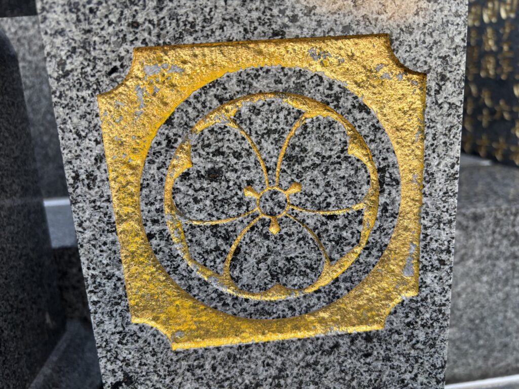 家紋は「丸に剣かたばみ」素晴らしい家紋です👍お仏壇とリン(鐘)に,24金象嵌サービスいたします♬