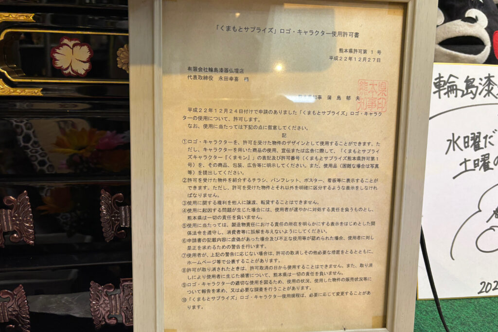 当時の蒲島県知事から「くまモン商標第一号」いただきました♬