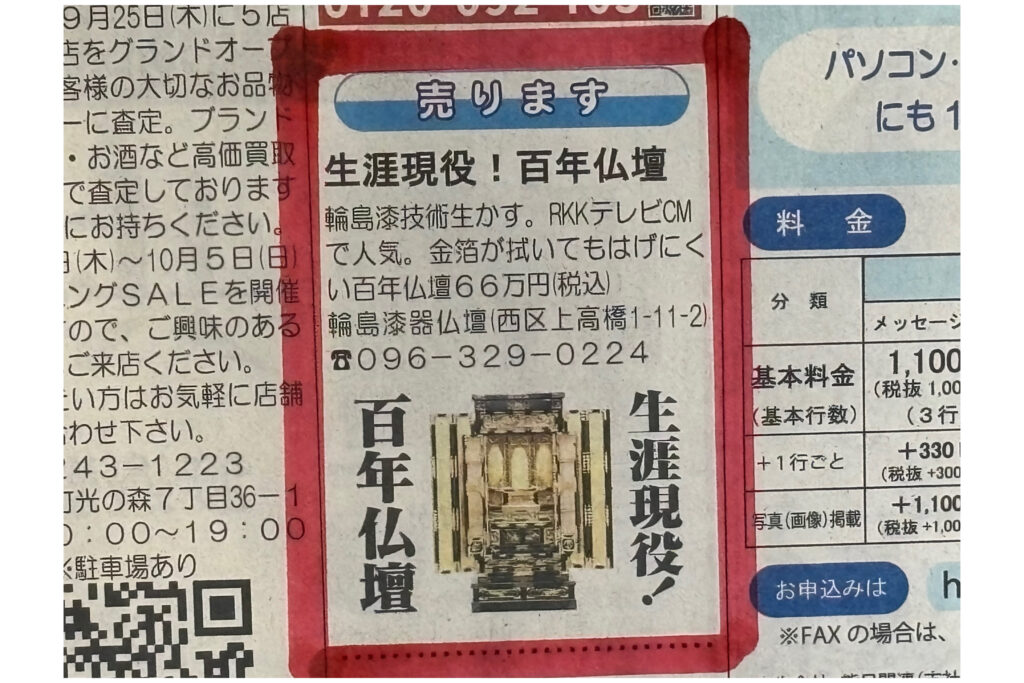 (有)輪島漆器仏壇店〒860-0061熊本市西区上高橋1-11-2☎️096-329-0224FAX📠096-329-0259