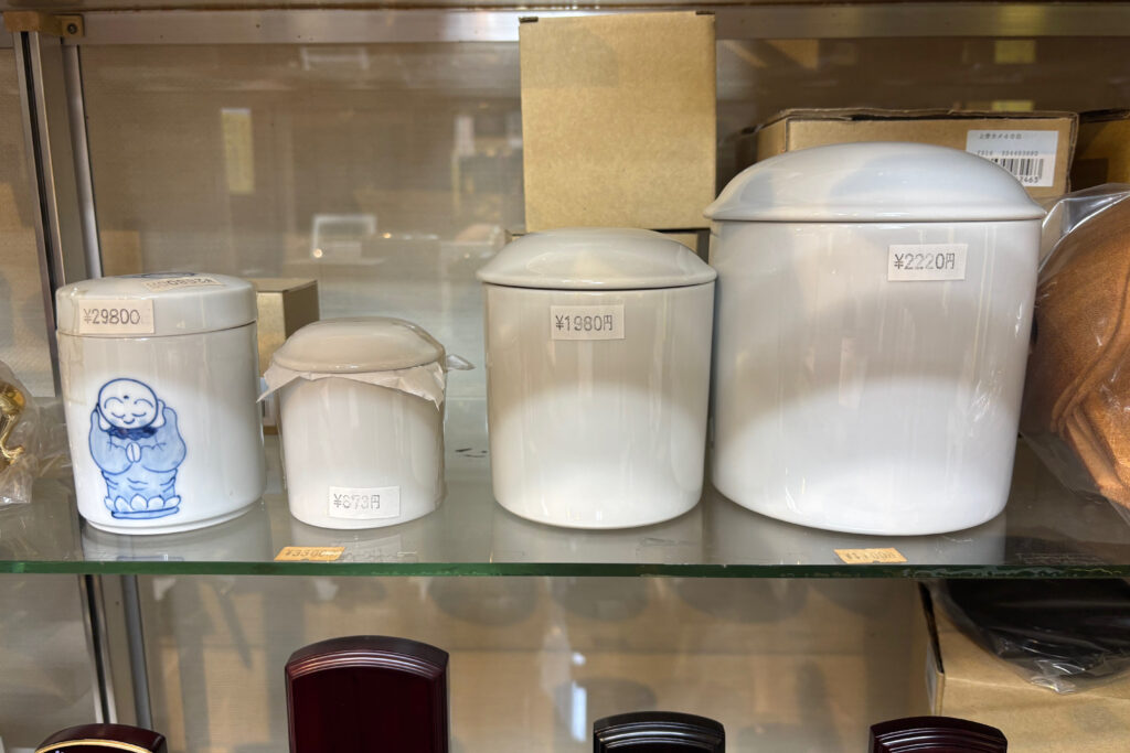 当店に,分骨用小さな骨壷用意しております。