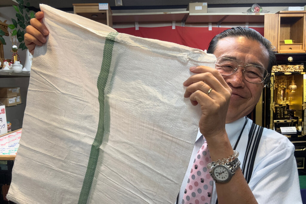ホームセンターに,布・麻の袋が売ってあります。急ぐ時には,便利です。(大抵、皆様急いでいらっしゃいます)
