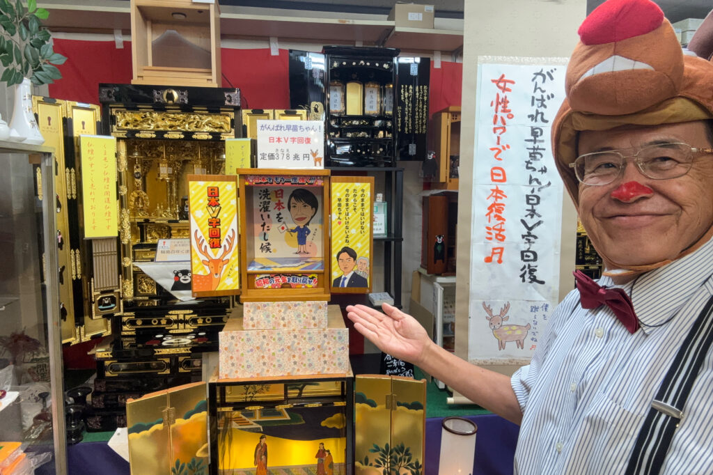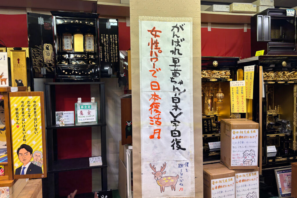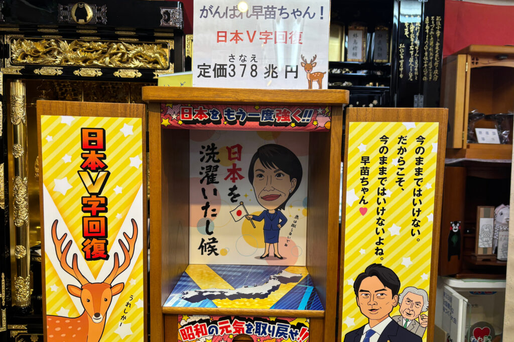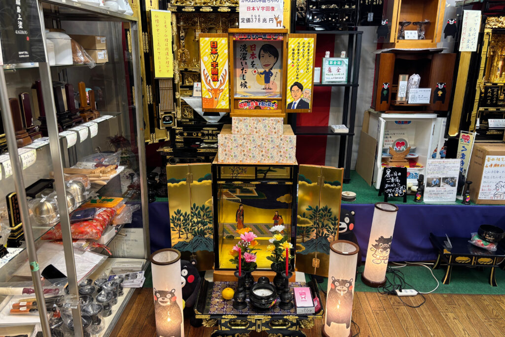 「がんばれ高市ちゃん!日本V字回復」応援仏壇今朝10:00から天台宗聖徳寺作村住職が開眼法要式いたします♬