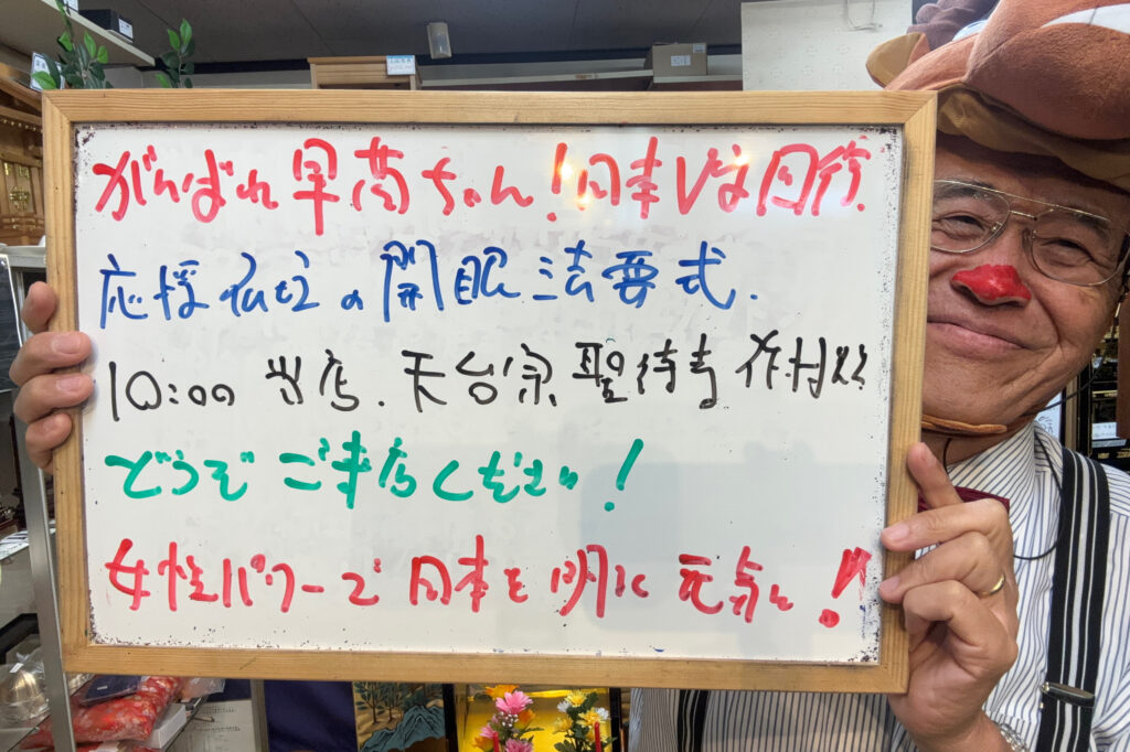 今日、午前10:00天台宗聖徳寺作村住職様に,高市早苗さんの就任祈願『開眼法要式』執り行います。お時間許される方は、ぜひご来店くださいませ♪必ず,ご利益あると思います♬
