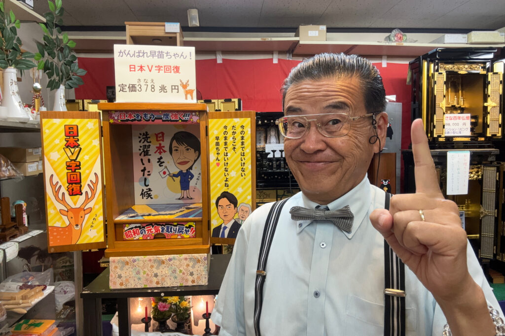 どうぞ皆様『がんばれ早苗ちゃん!日本V字回復』応援仏壇作成いたしました。