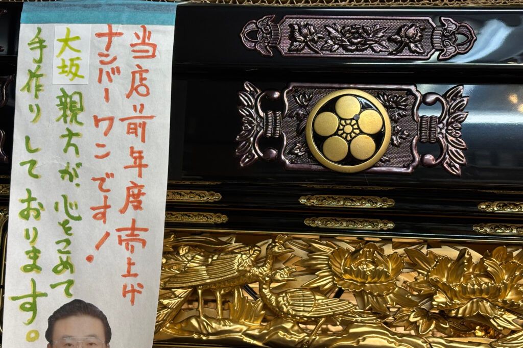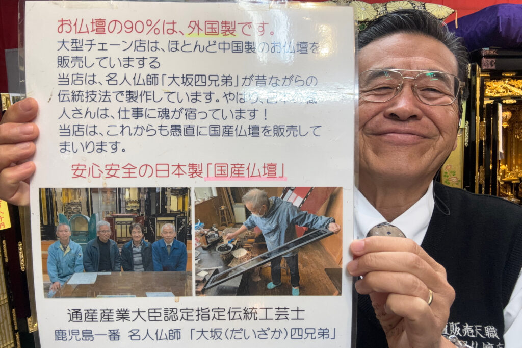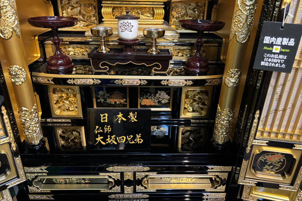 輪島漆器の技術を生かして通産大臣認定伝統工芸士「大坂(だいさか)四兄弟親方が,毎日コツコツ手作りの国産仏壇です。日本1のお仏壇と、私は確信しております!