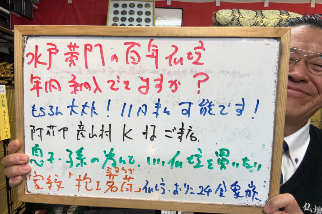 🌟水戸黄門の仏壇は、年内納入できますか?