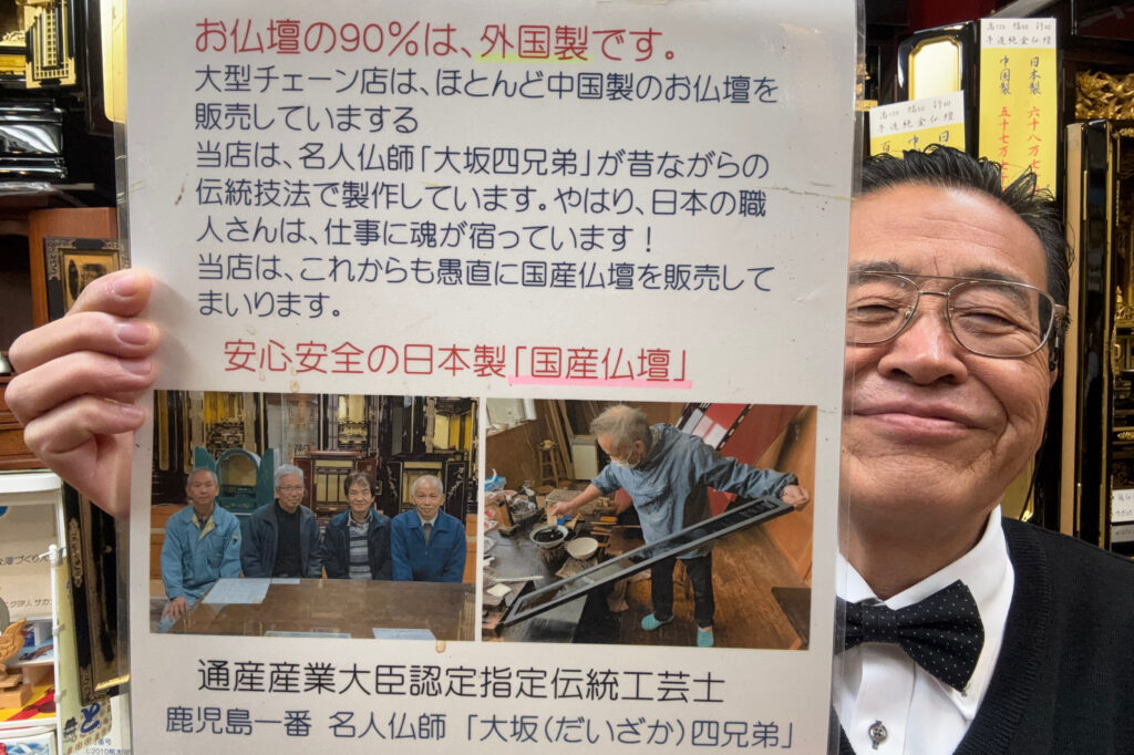 今、お仏壇はほとんど中国製です❗️当店は国産です。国産日本製にこだわります!私の天命は、日本の仏壇職人匠の仕事を守る事です!