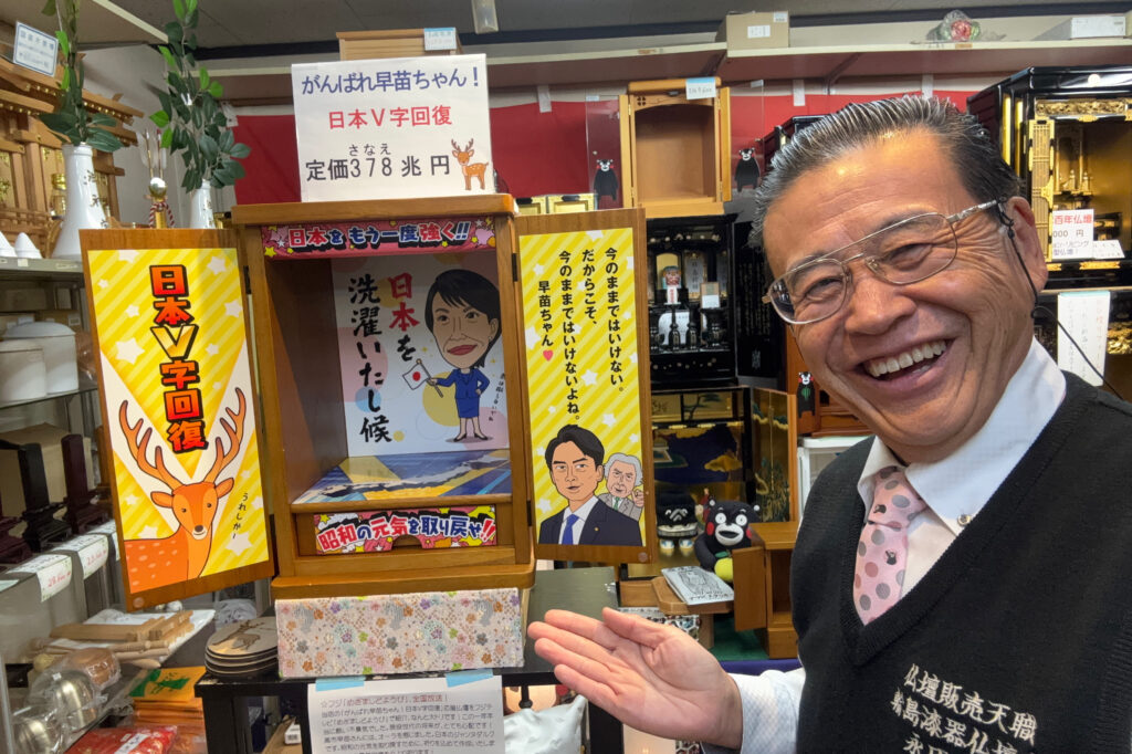当店に『がんばれ早苗ちゃん!日本V字回復』応援仏壇が、鎮座しております*\(^o^)/*
