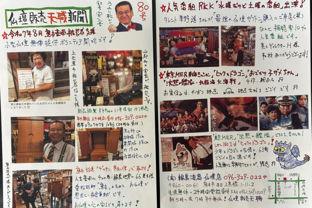 ご来店お客様にお店だより「仏壇販売天職新聞80号」店頭無料配布中🆓🈚️