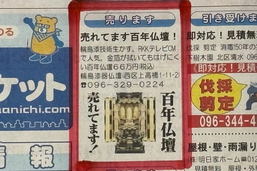 🌟RKK水戸黄門テレビショッピング&熊日新聞広告おなじみ「金箔が拭いてもハゲない百年仏壇」💯