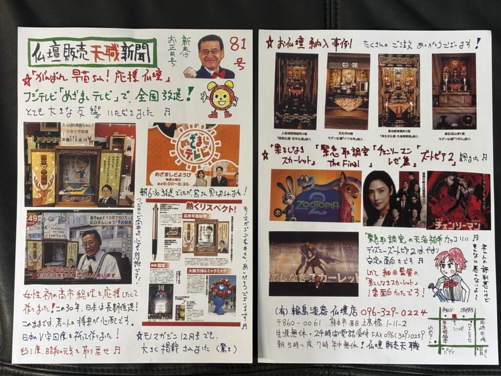 お店だより『仏壇販売天職新聞81号』店頭無料配布中🆓🈚️