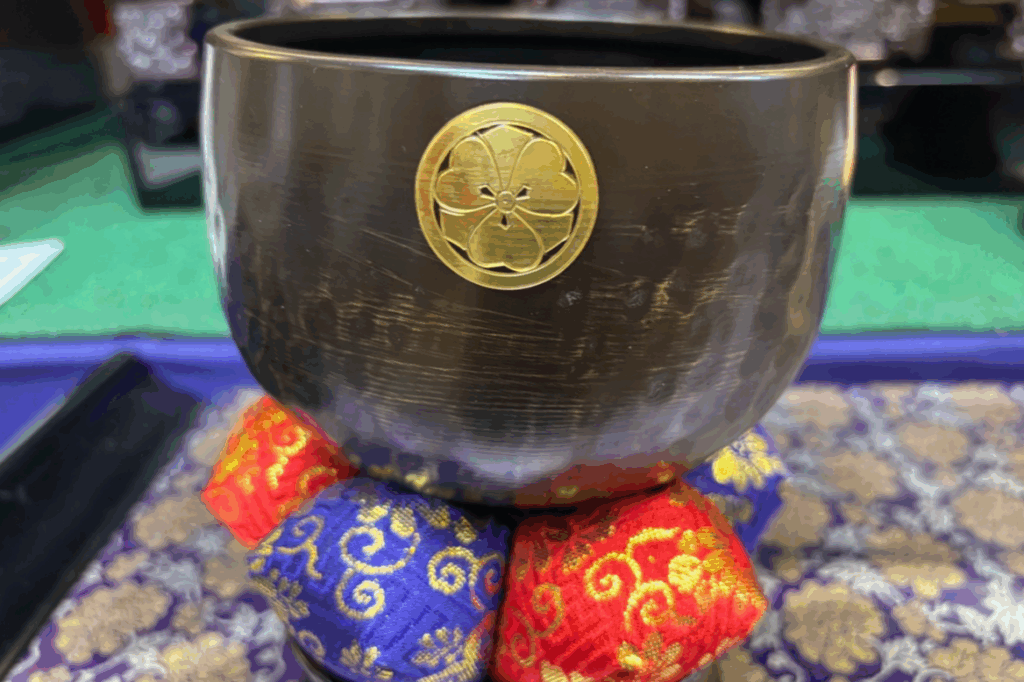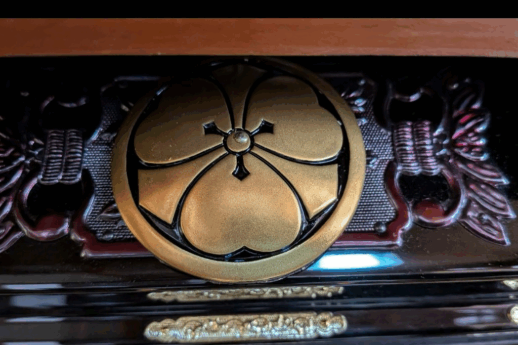 お仏壇そしておリン(鐘)に,家紋24金象嵌サービスいたします🈂️🈂️🈂️