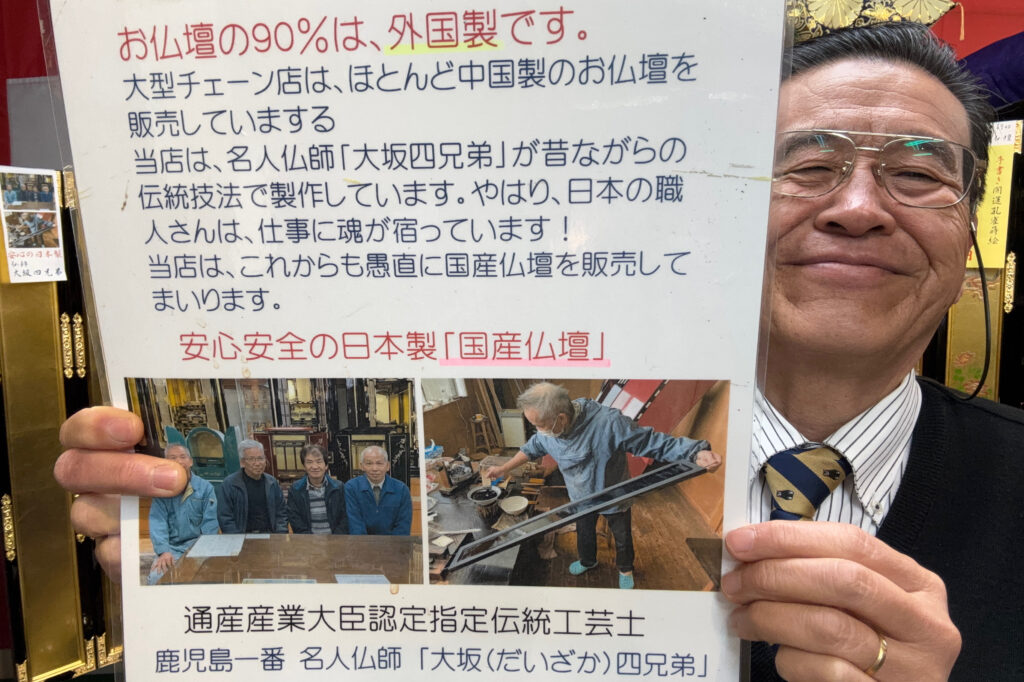 輪島漆器の技術を生かして通産大臣認定伝統工芸士「大坂(だいさか)四兄弟親方が,毎日コツコツ手作りの国産仏壇です。日本1のお仏壇と、私は確信しております!