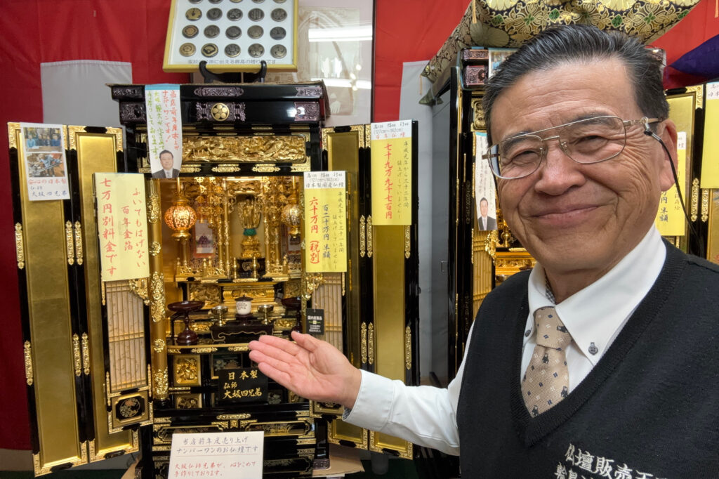 輪島漆器の技術を生かして通産大臣認定伝統工芸士「大坂(だいさか)四兄弟親方が,毎日コツコツ手作りの国産仏壇です。日本1のお仏壇と、私は確信しております!