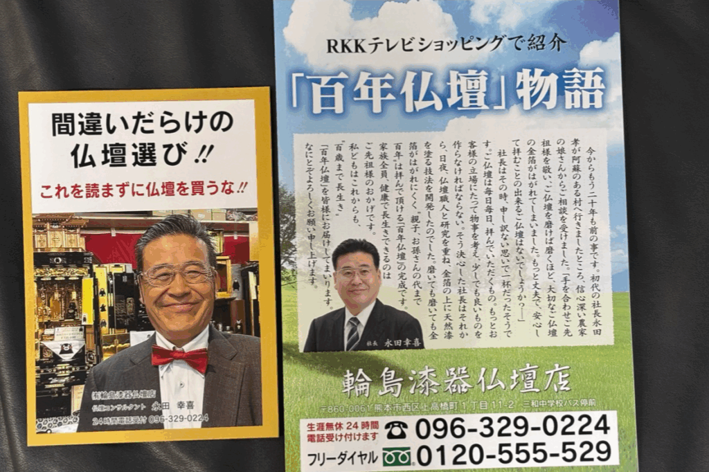カタログ「百年仏壇物語」&小冊子『間違いだらけの仏壇選び』お電話いただければ、お届けいたします♬096-329-0224☎️携帯090-7478-1086真夜中でも社長対応📲