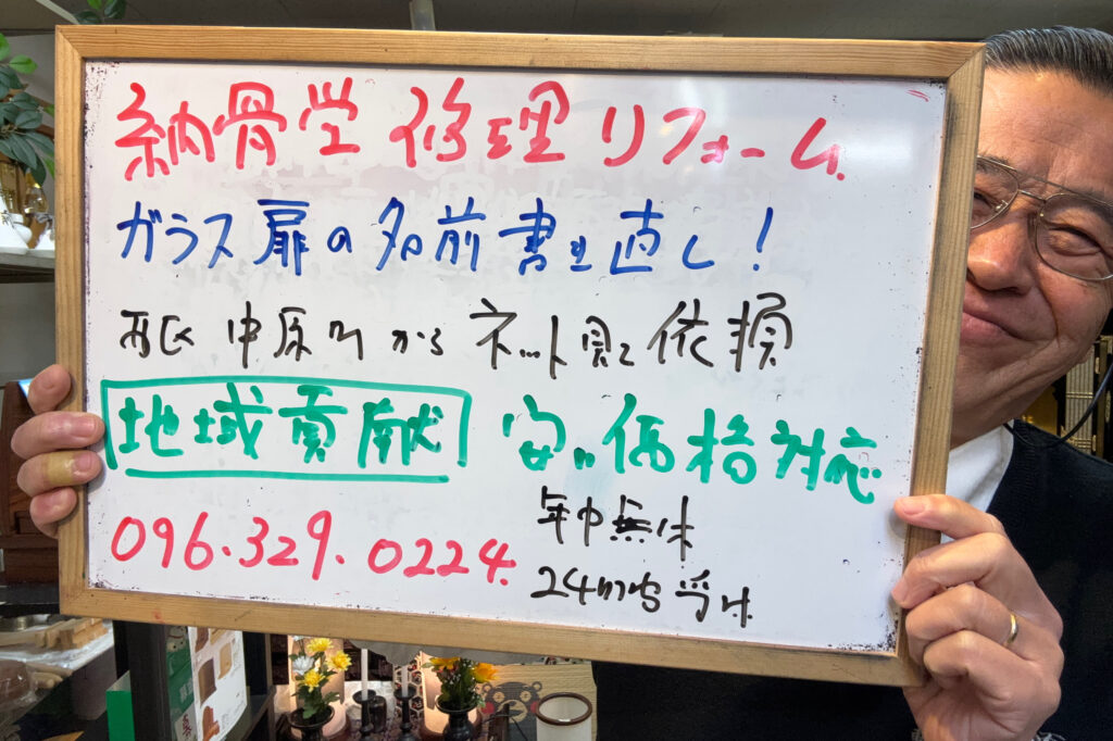 年中無休・24時間電話受付096-329-0224☎️携帯090-7478-1086真夜中でも社長対応📲当店は、良心安全仏壇リフォームいたします