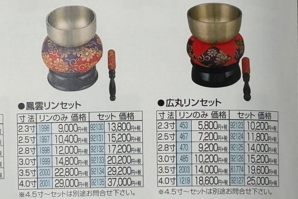 おリン(鐘)は、広丸りん3寸セットです。