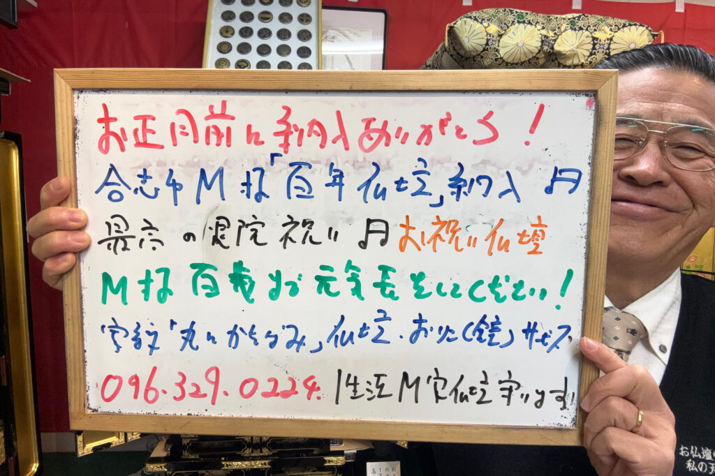 M様の百年仏壇を一生涯アフターサービスいたします🈂️電話096-329-0224☎️携帯090-7478-1086真夜中でも社長対応📲