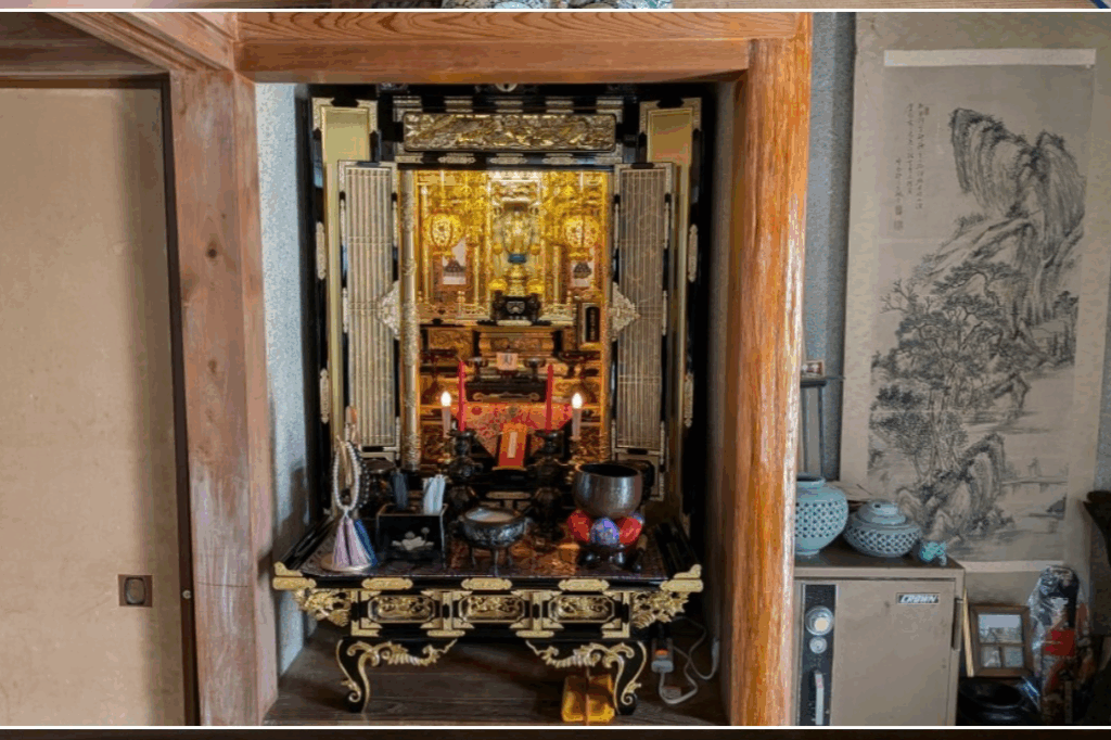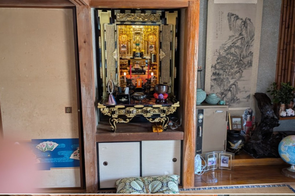 『うちは仏間がちょっと違うの🤏幅70㎝行60㎝高さ140㎝の穴が,白い壁にこしらえてあるの』